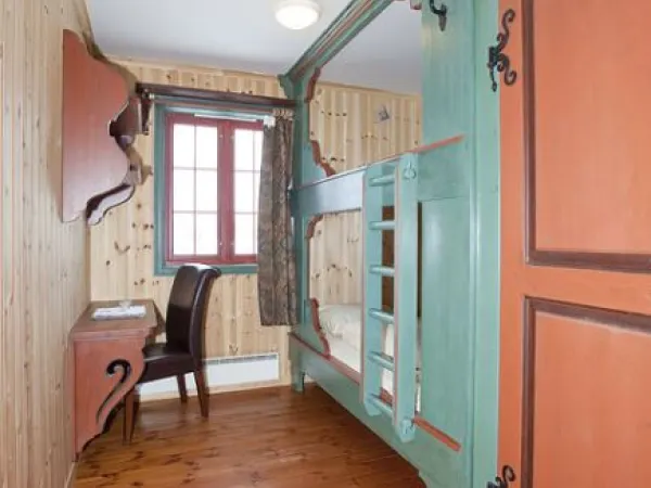 Dobbeltommene har parkettgulv, en 1.40 køyeseng, bad med dusj og toalett og tilgang til TV-stue.